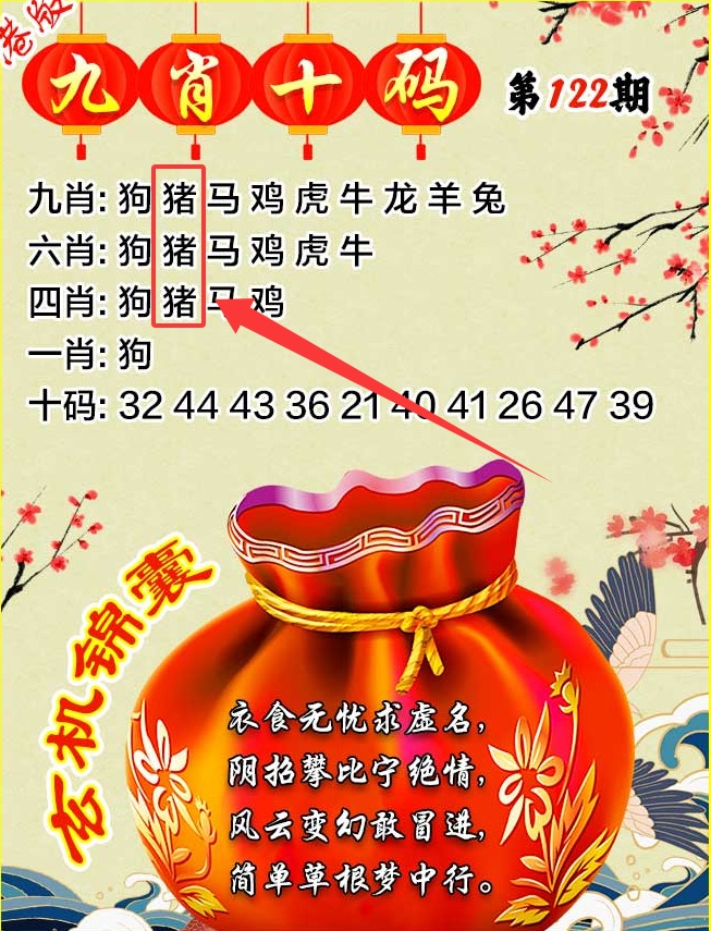 第122期幽默猜测(鸡鸣狗盗):一司机大雾天晚上迷了路,隐隐约约看见路边有一个路标,就把车停了下来。可是雾太大,怎么也看不见上面写的什么字,于是决定爬上去看看。终于爬上去,看清了上面的字:油漆未干。...本期图片会给我们带来什么样的玄机呢? 解析:怎么也看不见上面写的什么字,解兔鸡牛猪蛇猴 幽默猜测推荐四肖:兔鸡牛猪+蛇猴 |
