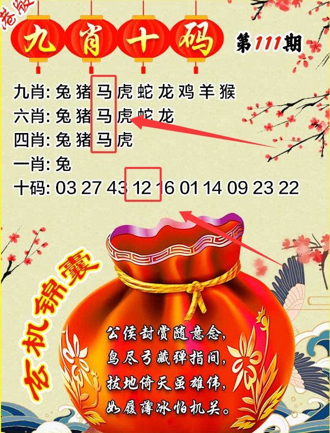 111期:三头中特〖3-1-2头〗开:12准