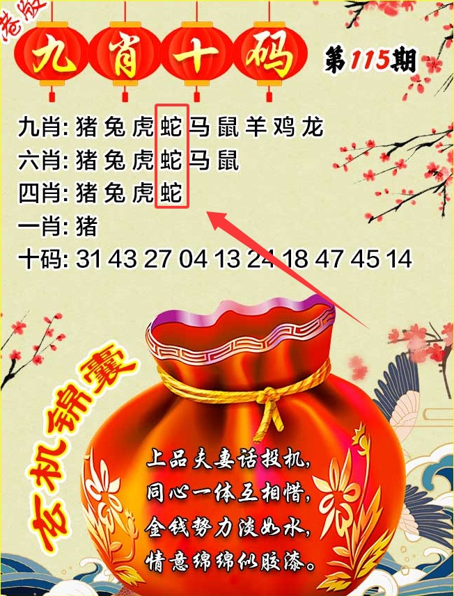 第115期幽默猜测(油嘴滑舌):突然听到一女声高呼:陛下!陛下!我立刻淡定地回了句:爱妃何事?正在此时,我被楼上倒下来的水淋湿了.那女的说:叫你避一下了,偏不听......本期图片会给我们带来什么样的玄机呢? 解析:叫你避一下了,偏不听,解龙马狗虎鸡蛇 幽默猜测推荐四肖:龙马狗虎+鸡蛇 本期猜测稳中波色:绿波红波  |